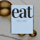 This blank personalised recipe book is the perfect engagement or bridal shower gift for any couple who loves to cook together. The blue cover features the bold typography style word "eat" in a bold and modern design that will look great in any kitchen. The inside pages are blank, allowing the couple to fill them with their favourite recipes and culinary creations. The book can be personalised with the couple's names, adding a special touch to this thoughtful gift. With this recipe book, the couple can create and record their own delicious memories in the kitchen for years to come.
