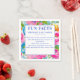 The center design highlights your names and a “Fun Facts” layout, creating a unique and interactive detail guests will love reading. From how you met to your favorite shared memories and honeymoon destination, these napkins turn everyday table décor into a keepsake-worthy conversation piece. The crisp white center panel keeps the design clean and elegant while allowing the colorful florals to shine.