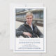 Modern Class of 2026 Navy Blue Graduation Party invitation with stacked “2026” bold typography. There is a photo of the graduate on the back.