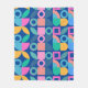 This colourful abstract pattern blanket features abstract shapes in pink,yellow,green and blue colour with blue background.A fun colours bright and bold colours fleece blanket for winter for your kids room or for yourself.