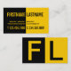 Contemporary design of a bold contrast eye-catching business profile card in combination of black and yellow. This is two side print design where everything is written on the front side. The front left part of the business card is black with yellow text on it. The right part is just the opposite, yellow with black text on it. The back side is also divided on half, where left part is black and right part is yellow, both with big monogram letters. Very bold, modern, professional and eye-catching design which will sure make an impression on your client and will stand out from other business cards from their pack of business cards.