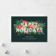 Send beautiful, personalised holiday greetings with this stylish card, featuring various hand drawn floral elements (pine, flowers, buds, pinecones, leaves, and sprigs). Modern typography reads, "Happy Holidays" in white, and the foliage elements are layered below, with some elements above the text. Text templates on both the front and back are easy to customise. The background colour (shown in deep green) can be customised to a different colour, if desired. *All artwork created exclusively by Orabella Prints - all rights reserved.