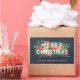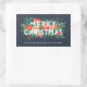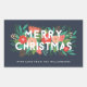 Modern Bold Floral Merry Christmas Name Blue Rectangular Sticker