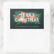 Modern Bold Floral Merry Christmas Name Green Rectangular Sticker