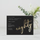Modern minimalist 80th birthday party invitation features stylish faux gold foil number handwritten script eighty and your party details in classic serif font on black background colour, simple and elegant, great surprise adult milestone birthday invitation for men and women. The black background colour can be changed to any colour of your choice.