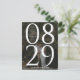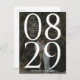 This modern and bold save the date card features the date of your wedding in extra large numerals in white type on top of a photo background. The couple's names and the wedding location are displayed inside of the zero for months January through September and to the left of the numeral one for months October through December. This chic save the date card will make a statement and set the tone for your wedding. The back is set up as a postcard, making mailing easy and affordable.