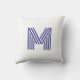This modern and stylish pillow features your monogram in a trendy, striped, disco-style typography initial. The pillow as shown here features a blue letter on a white background, but you can easily choose any colour for the letter and the background in the design tool. A cool and colourful look that anyone would love.