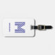 This modern and stylish luggage tag features your monogram in a trendy, striped, disco-style typography initial. The luggage tag as shown here features a blue letter on a white background, but you can easily choose any colour for the letter and the background in the design tool. A cool and colourful look that anyone would love.