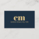 Elegant customizable business card template with navy blue background and bold golden brown monogram.