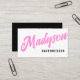 Make a stylish impression with your name in large bold minimalist script typography business card. Customise with your name and title on front (if you have a name with few letters, add the first initial of your surname to fill space) — on back, add your contact info. You can change colours and font style in the 'Edit using Design Tool' found in the 'Personalise this template' section. Part of a collection. For additional matching marketing materials please email me at themarisuvalencia@gmail.com or send me a message via Zazzle chat. Original design by Marisu Valencia.