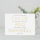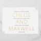 This modern and minimalist wedding invitation features beautiful and bold type in real gold foil highlighting the couple's names. The date and location accent the main type. This wedding invitation is perfect for couple's seeking a simple and modern aesthetic that emphasizes the couple's names.