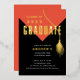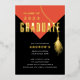 Modern & bold Class of 2022 graduation party invitation featuring an orange grad cap with a gold foil tassel set on a black background. Visit our shop to view this design in a variety of school colours.