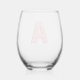 Modern Bold Pink Custom Monogram Stemless Wine Glass