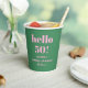 Modern Bold Pink Green 50th Birthday Custom Paper Cups