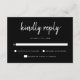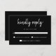 Let your guests RSVP in style with this modern RSVP card featuring a bold hand-lettered script. The informal yet elegant design creates a welcoming tone, while the clear layout with response options and a designated space for guest count ensures a smooth and effortless RSVP process. This RSVP card is the perfect complement to your modern wedding invitations.