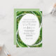 Bold watercolor leaves in greens and gold create an oval frame for these stylish wedding invitations by Orabella Prints.
