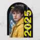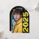 Celebrate your graduate in style with this modern and bold arch-shaped graduation announcement! Featuring a sleek black and white palette with bold pops of yellow, this minimal design adds just the right amount of personality to the big day. The back showcases your graduate’s details, making it a perfect keepsake to share with friends and family. Simple, stylish, and full of energy—just like your grad! Created by Simply Farmhouse Press.