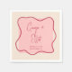 A modern and trendy wavy frame wedding paper napkin design in bold magenta pink, a soft matching pink colour and a hand drawn wavy frame on the front around your custom text and names. The perfect modern Boho wedding decor for a summer wedding or just a colourful celebration in general. This is a fully customisable wedding item template. All colours of this design can be changed in the design tool - background, text, and even the wave frame border! Matching wedding invitations and other items are available within this collection.
