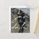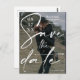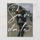 A modern and simple bold script in white on black overlay save the date wedding, add your photo.