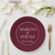 Modern wedding paper plates for your wedding reception, rehearsal dinner and bridal shower in the border minimalist burgundy theme.