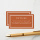 Modern border minimalist terracotta wedding details card with website information.