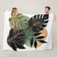 Modern Botanical Abstract Art Black and Gold Leave Fleece Blanket
