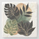 Modern Botanical Abstract Art Black and Gold Leave Stone Coaster