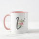This modern mug showcases a graceful script letter "V," beautifully accented by an exquisite botanical flower design. The elegant typography paired with vibrant floral elements creates a fresh and stylish look, perfect for brightening your coffee or tea routine. Ideal for both personal use and as a thoughtful gift, this mug seamlessly blends art and functionality.