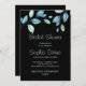 Modern Botanical Green Leaves Black Bridal Shower Invitation