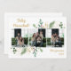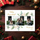 This simple watercolor botanical greenery and berries photo holiday card with 3 of your favourite photos in the centre and the words "Feliz Navidad" in a modern script font in gold above the photo and your family name and the year in the same script font in gold below the photo is perfect for sending to your friends and family. It's minimal and classic design is sure to bring smiles to the faces of every recipient. The back is a matching black.