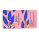 Modern botanical leaf dropper bottle labels with blue leaves, yellow dot flowers and a pink background.