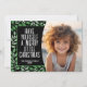 Modern Botanical Merry Christmas Photo black green Holiday Card