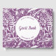 Pretty, elegant floral botanical silhouettes of nature, white foliage, leaves and flowers on a purple background.