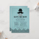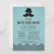 Perfect for a "Oh Boy", "Little Man" or "Moustache" themed baby shower! Our cute and modern moustache invitation features a top hat, moustache, & bow tie set on a blue background with a black chevron border. Flip the invite over to view a matching back for a special extra touch.