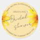 Square Sticker for Bridal shower in a modern, elegant, minimalist design with a sunny watercolor sunflower image.