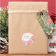 The sticker is made on wonderful paper and had no problem sticking to the bag that I purchased to put it on. I wanted to find a design that would be cute for the bride and groom and this one fit the bill as it has cute "bees" buzzing around and the wedding was taking place in a town called "Bee Cave". The packaging was great and protected the stickers. The website is easy to navigate and there are so many color choices. I had no problem finding a color that the bride was using on everything else selected. The design was adorable and there were many to choose from. You can make the figure as larger or smaller and you can place the photo and writting whereever you want to in the sticker. The printing is fabulous..better than expected.