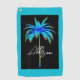 Modern Bright Blue Tropical Palm Tree Script Name Golf Towel