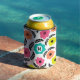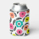 Modern Bright Flowers and Black Leaf Monogram Can Cooler