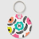 Modern Bright Flowers and Black Leaf Monogram Key Ring