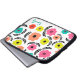 Personalised laptop sleeve with a bright, colourful and pretty flower pattern in summery colours on a white background.