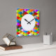 Modern bright funky colourful triangles pattern Wall Clock home decor. Cool and fun geometric pattern made from many different coloured triangles - yellow, orange, red, blue, green, pink, brown...