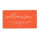 Add a bold, modern touch to your outgoing packages with these bright orange return address shipping labels. Featuring elegant white calligraphy-style script for your family name and classic serif text for the address, these labels are both functional and stylish. Ideal for personal or business use, from everyday mailing to holiday packages and wedding favours. Personalise with your own name and address for a custom look that stands out.