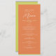Presenting our minimalist wedding menu, a harmonious fusion of modern sophistication and vibrant colours. Bright sun-orange and fresh green accents infuse the design with energy and freshness. Adorned with a romantic gold rope heart and featuring simple script, this menu elegantly showcases the culinary delights awaiting your guests. It sets the tone for a memorable dining experience while adding a touch of romance to your reception decor.