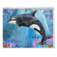 Introducing our Modern bright watercolor sea life calendar featuring stunning purple, blue, and violet hues. This unique design showcases majestic whales, graceful jellyfish, whimsical seahorses, a majestic sea turtle, magnificent orcas, and fierce sharks in a vibrant neon watercolor palette that you can customise with your own personal touch by selecting the “Personalise” button.