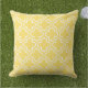 Stylish pillow features a modern decorative Moroccan quatrefoil pattern in white. Customise the bright yellow background to coordinate with your outdoor decor.