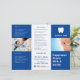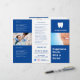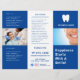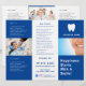 A simple custom 3-photo logo business trifold brochure template in a modern minimalist style on a clean blue white background.