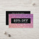Coordinates with the MODERN BRONZE-PURPLE OMBRE GLITTER Business Card Template by 1201AM. The glittery peachy-bronze and royal purple ombre background image provides visual interest, lending itself to a variety of industries and professions. Customise the fields with your own text and info. These discount coupon cards are great for salons, boutiques, hair stylists, gift shops and more. © 1201AM CREATIVE