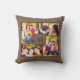 Modern Brown 4 Family Photo Collage Monogram Cushion