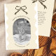 This design features modern Thanksgiving photo card with beige background and a brown bow. The elegant scalloped edges and oval photo frame make it the perfect choice for showcasing your favourite family photo. Personalise with your family's name and photo.