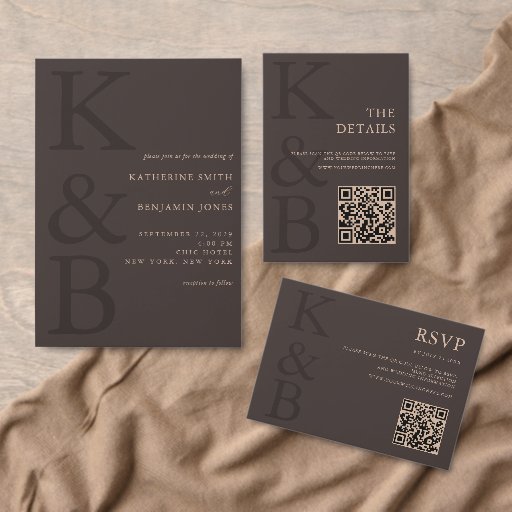 Modern Brown Monogram Minimalist Wedding Invitation